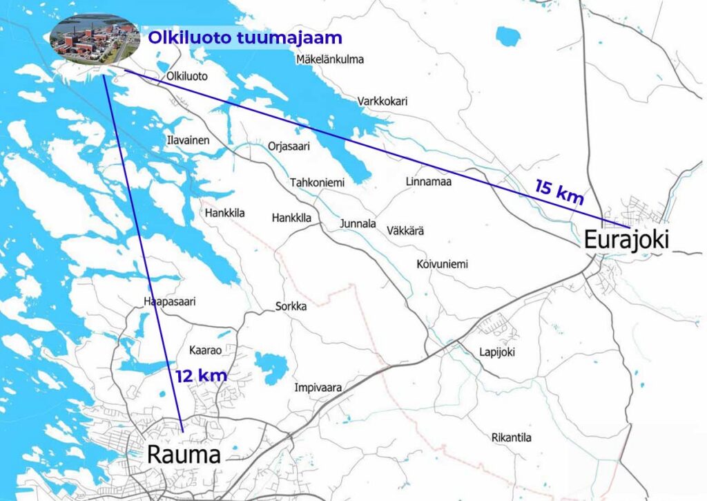 🏡 Olkiluoto tuumajaamast lähimad elamud asuvad ligikaudu 3 km kaugusel.